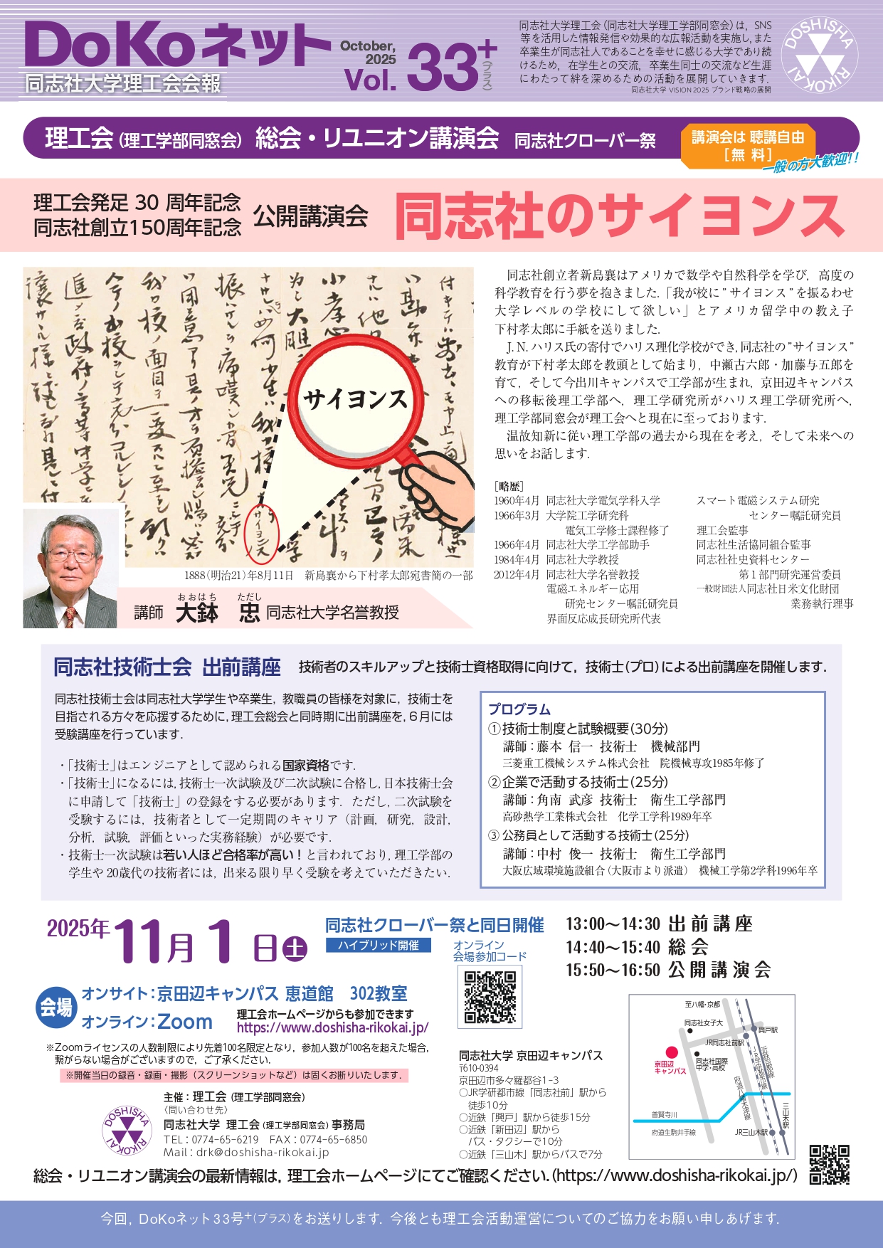 2025年度同志社大学理工会 理工学部支援奨励賞公募について(お…