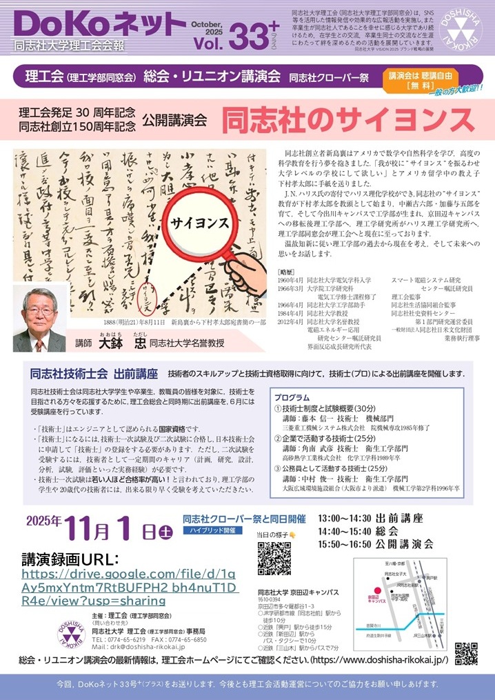 2025年度2025年度 理工会東京支部 リユニオン公開講演会案…