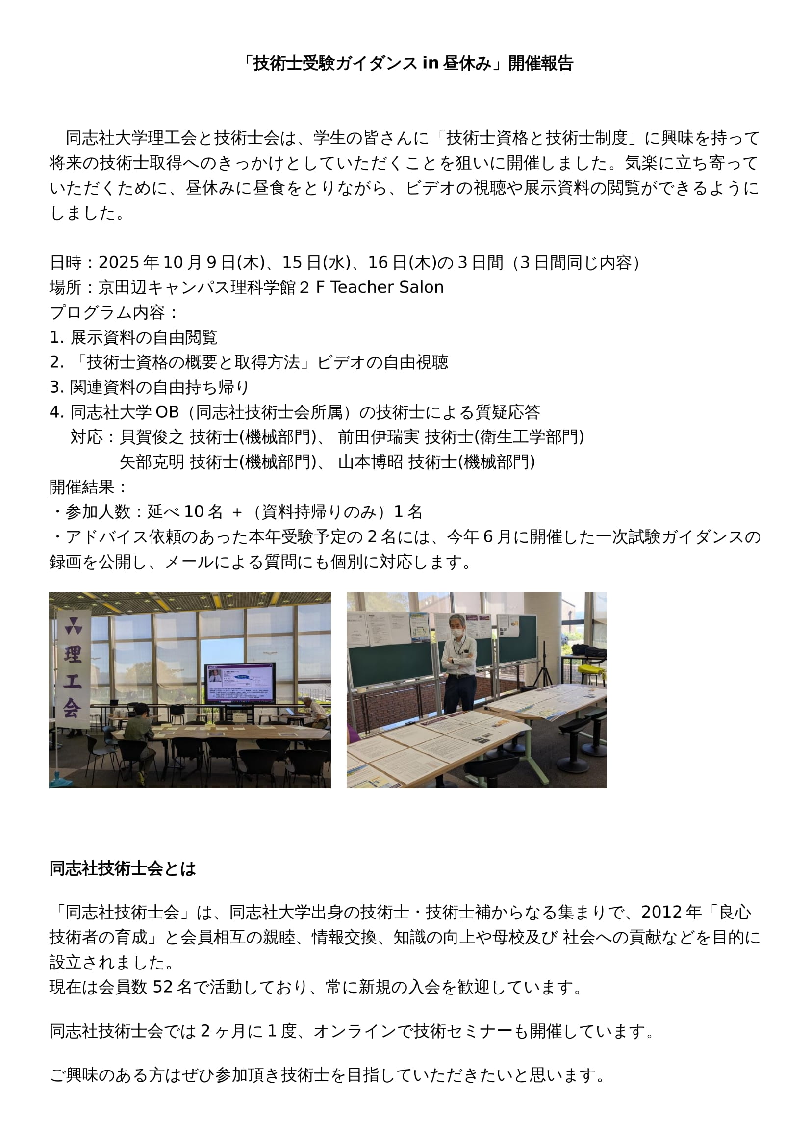 SNS(Facebook):https://www.facebook.com/同志社技術士会-497533544081200/
