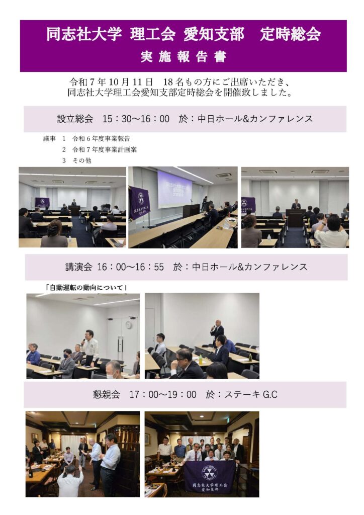 そしてこれを同志社流に補完する集まりが理工会であり、地域カテゴライズすることで愛知支部は発足致しました。