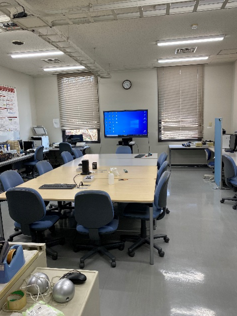 YE321は主に会議室として使用されています。ここで毎週「院生集合」と呼ばれる時間に先生方と学生たちの情報共有が行われていたり、「輪読」と呼ばれる時間に研究の進捗状況を発表したりしています。