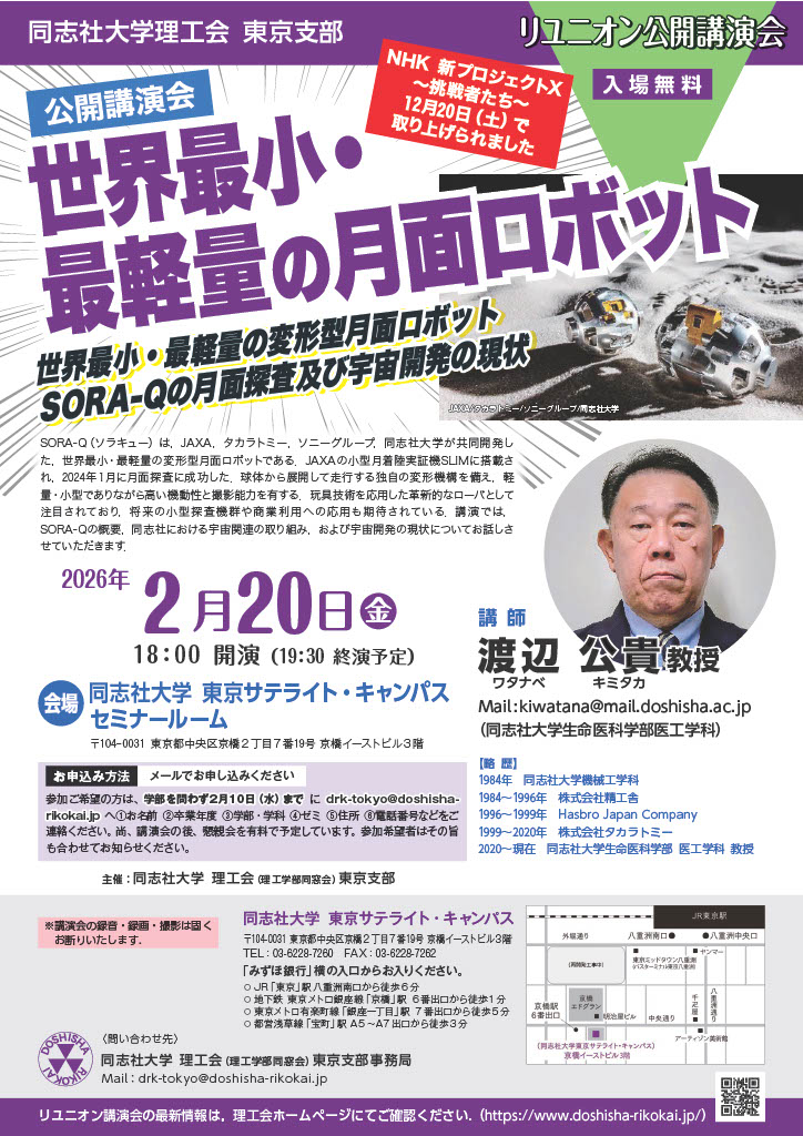 2026年2月20日(金)に、理工会東京支部リユニオン公開講演会の開催を予定しております。