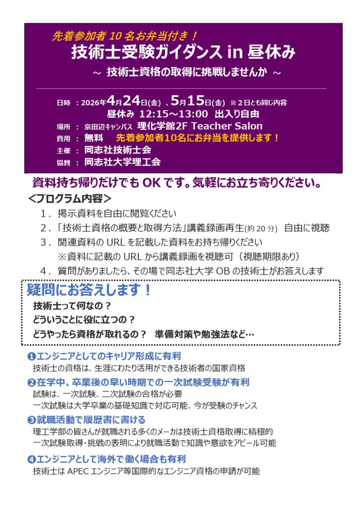 技術士受験ガイダンス in 昼休み(ご案内)